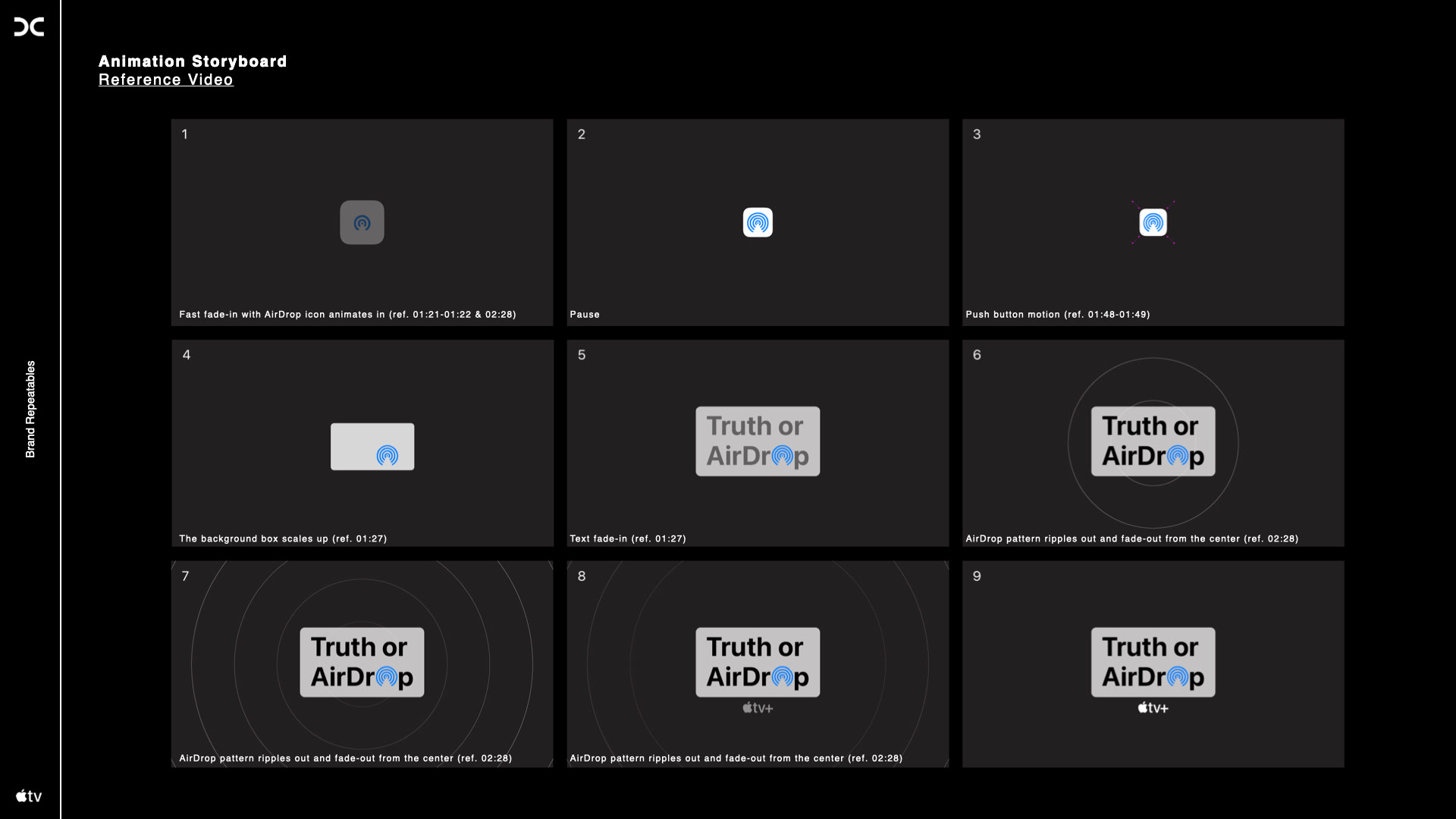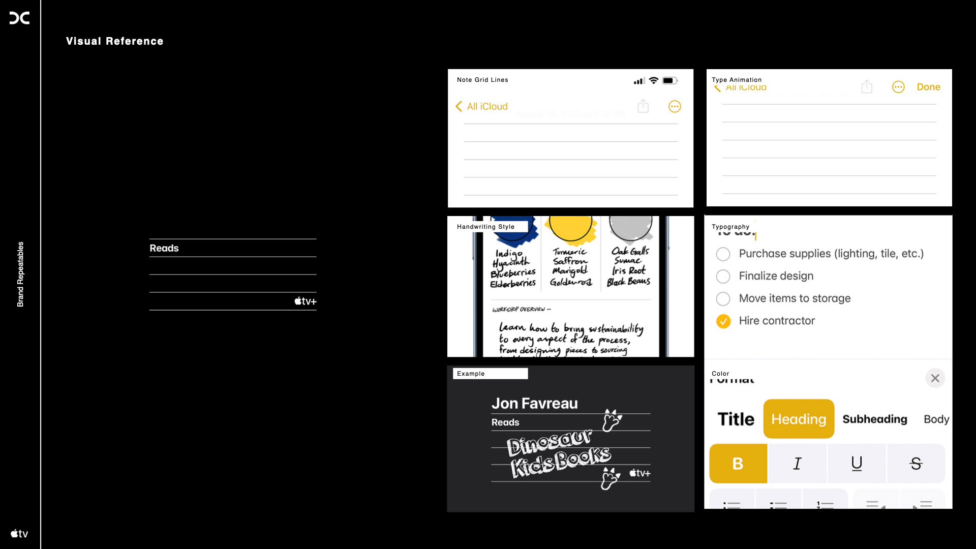 Summary: My team was tasked with developing concepts for open credits sequences across the Social Repeatable's for Apple TV+ Original Content lineup. Logos took cues from the existing Apple UI Design system.